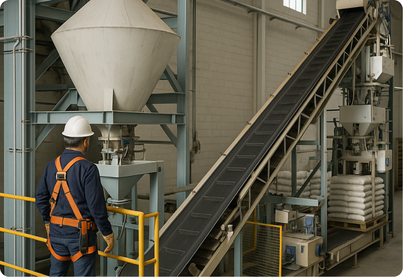 Descripción del trabajo: Diseño, suministro e instalación de equipos para la mezcla y empaque de fertilizantes, incluyendo sistemas de dosificación, bandas transportadoras, equipos de empaque y accesorios, garantizando procesos eficientes y de alta capacidad operativa en la planta de Santa Marta.